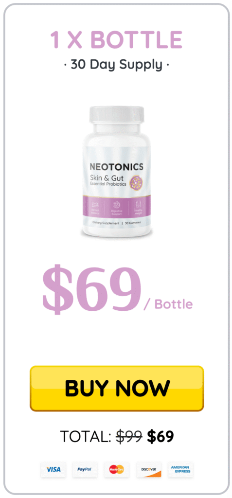 Made with 100% natural, non-GMO, and gluten-free ingredients, Neotonics contains no harmful chemicals, fillers, or stimulants. It’s a safe, non-habit-forming way to achieve lasting skin and gut transformation.